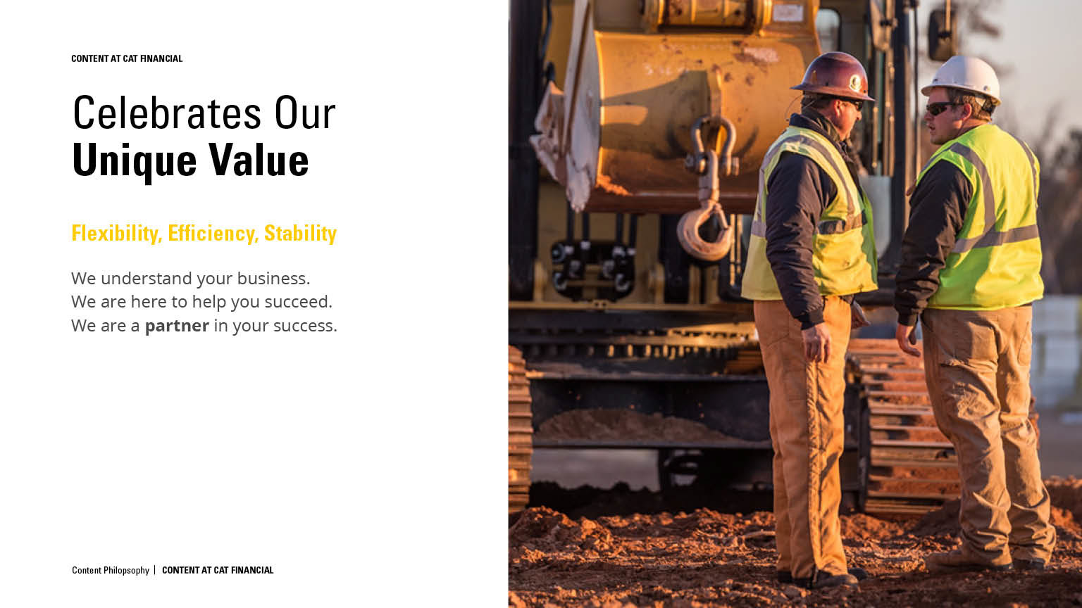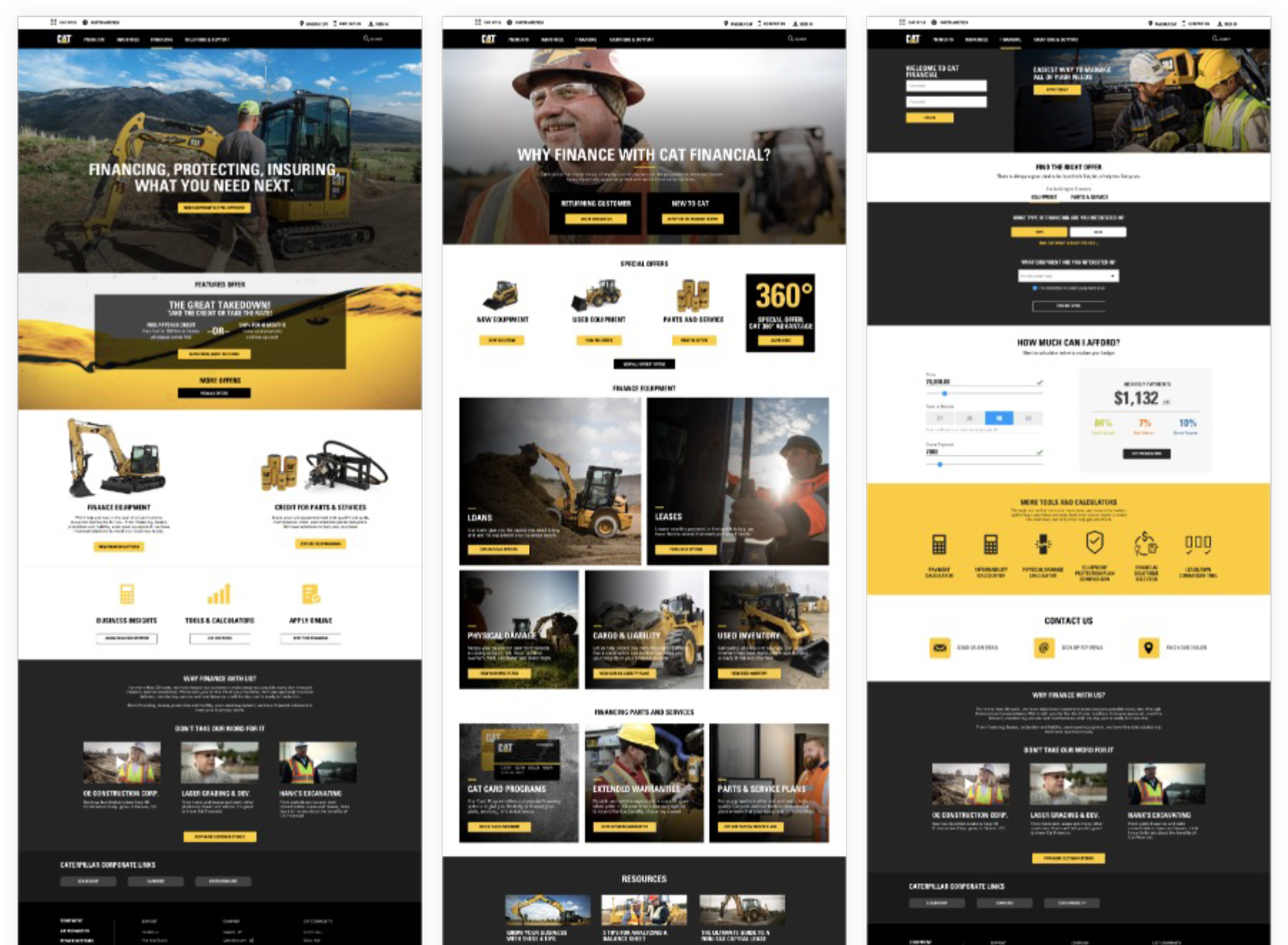 Cat.com receives over 30k visits per day. CatFinancial.com was averaging under 2k. The leadership at CatFi wanted to cast a wider net to potential customers by moving their content to cat.com. In the process, they also wanted to eliminate the “junk drawer” that catfinancial.com had become.