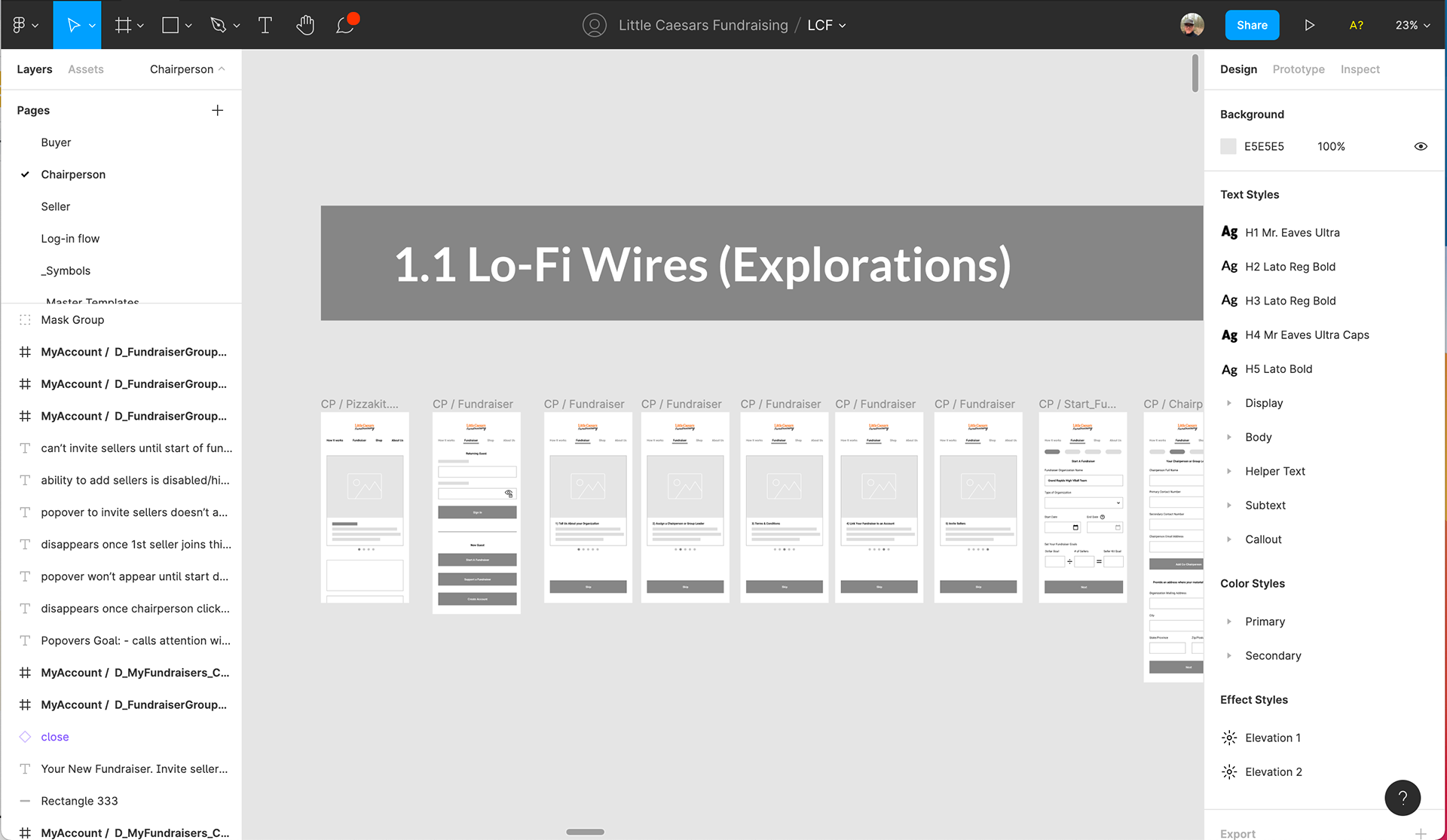 Prior to screen designs, we interviewed users from each of the primary personas; 4 chairpeople, 4 sellers, and 4 buyers. Interview data was assembled in an AirTable database and shared with the client for reference.